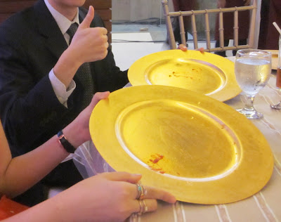 Here's a super jologs moment that happened to us. When we sat at our table, there were already gold plates set down there. I was thinking