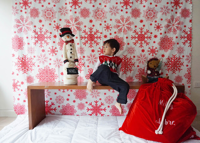 I just made use of whatever decors we already had and used our dining room as a makeshift studio. The backdrop I used is a tablecloth I got from SM which I just taped to the wall. I also used a white duvet to cover the floor.